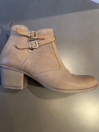 Botines de ante en color nude con tacón. Un básico para tu armario. - Material tipo ante. - Tacón cuadrado. Usados en 3 ocasiones