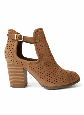 Botines de piel sintética con un diseño moderno y elegante. - Detalle de perforaciones decorativas. - Tacón alto para un look sofisticado. - Cierre de cremallera lateral. - Interior de piel sintetica y tela, calentito para el verano.