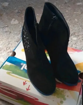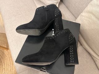 Botines de ante negros. Desigual. Por dentro, la plantilla está algo desgastada, pero por fuera están bien.