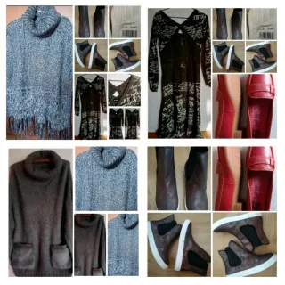 Conjunto de vestido Desigual con estampado de letras y botines.---- Jersey Gris Muy Nuevo y suave Vale 4---- Vestido de manga larga Desigual Vale 5 - Botines Marrón Dorado Surkana N.36 Nuevo Vale 10 Zapato Rojo Just Like Piel N. 35-Vale 9
