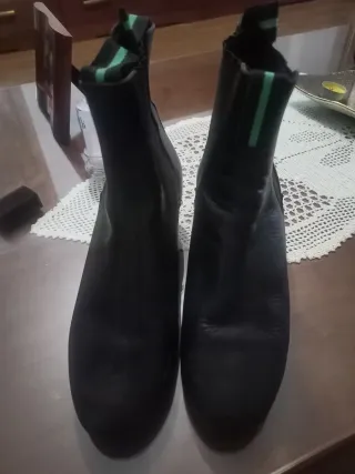 Botines de piel negros de baile flamenco por sus tachuelas en las suelas o para disfraz Muy poco uso ,pero debido al tiempo guardados la piel está con marcas como se ve en alguna foto, por eso su precio También envíos por Wallapop - Diseño elegante y cómodo. - Material exterior de piel. - Detalle de elástico lateral.