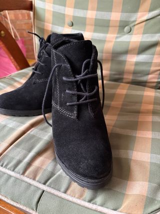 Botines de tacón de la marca Mango. - Material exterior de ante. - Tacón de bloque de madera. - Cierre de cremallera lateral.