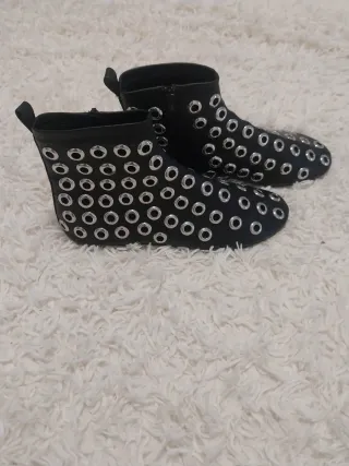 Botines de Mango con un diseño moderno y llamativo. -Muy planos y cómodos. - Detalle de tachuelas plateadas. - Cierre de cremallera lateral. -Cuero sintético.