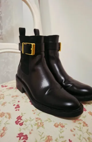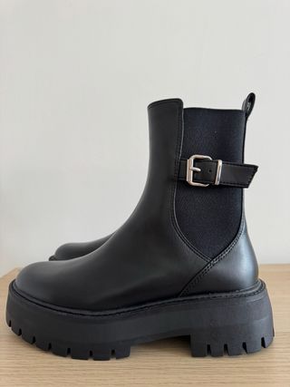 Botines tipo Chelsea de piel. Mango. - Diseño elegante y versátil. - Cierre elástico lateral. - Suela de goma. Usadas solo una vez. Vendo por problema con la talla.