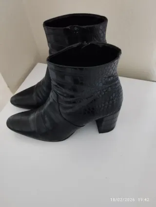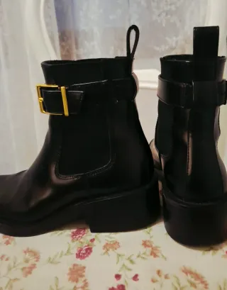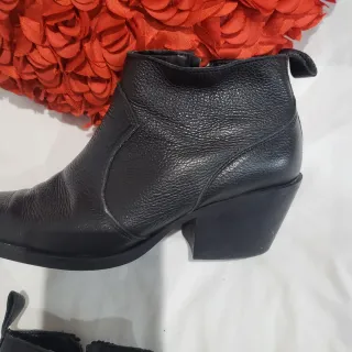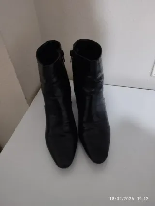 Botines de cuero con un diseño moderno y elegante. - Material: Cuero blando - Tacón grueso - Punta cuadrada Se recoge en benimaclet Si compráis más cosas hago precio