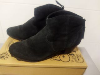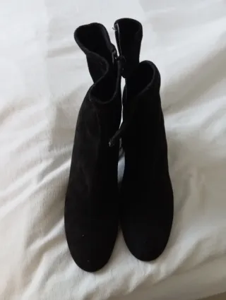 Botines de ante en color Negro. - Talla 38. - Detalle de cremallera trasera. - Tacón bajo 5 cm .