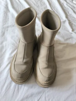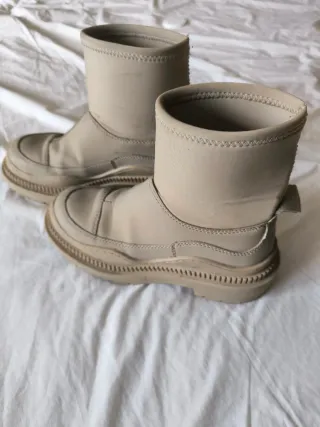 Botines de media caña con un diseño moderno, muy cómodo. - Material exterior de neopreno acolchado. - Suela gruesa y resistente. - Color beige versátil.