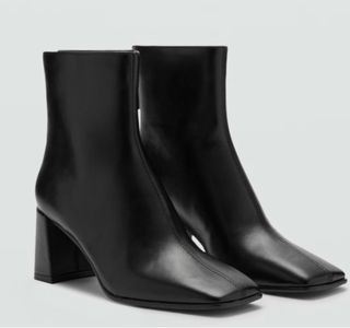 Botines de piel negros de Mango. Dos puestas - Tacón grueso. - Punta cuadrada - Cierre con cremallera lateral.