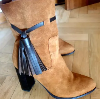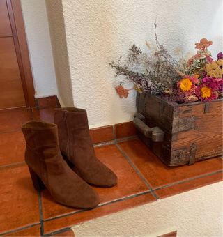 Botines serraje tacón marrón talla 36 tacón 7.5cm