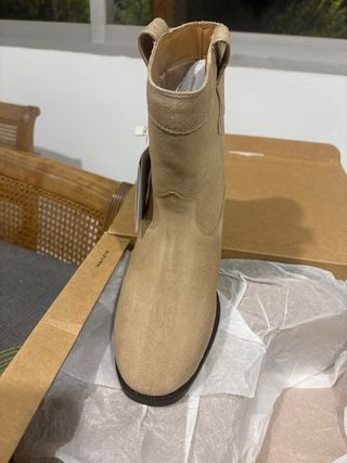 Botines de Mango, con caja, sin uso, nuevos. Botas De piel vuelta. Collor marrón claro, beige. Modelo Aime Con tacón cuadrado, estilo cowboy.