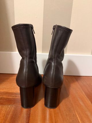Botines de piel de Mango, sin estrenar. - Color marrón. - Talla 37. - Tacón.