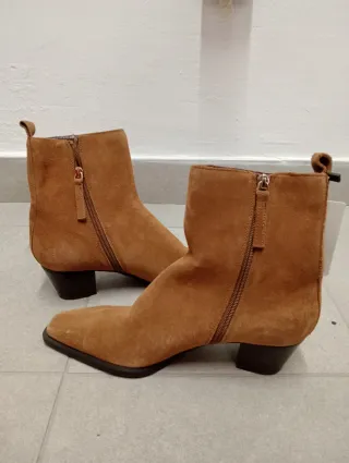 Botines de ante en perfecto estado, color camel, talla 38 de Mango. Tacón justo, porque son comodísimos. Van con todo.