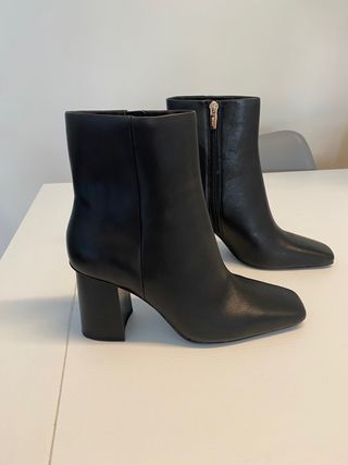 Botines de tacón con un diseño moderno y elegante. Puesto solo una vez. - Tacón cuadrado. - Cierre de cremallera lateral. - Punta cuadrada. Tacon 8 cms