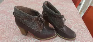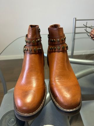 Botines de piel con cordones. - Material exterior de piel. - Cierre de cordones. - Suela de goma. Estilo safari con suela más cómoda ya que no es tan plana y tienen un poco de altura en parte del tacón. Forrados con pelito por interior. Son muy cómodos pero los vendo porque me quedan pequeños, solo los he usado en casa para probarlos. Marca de zapatos de muy buena calidad. Su precio es de 60€.