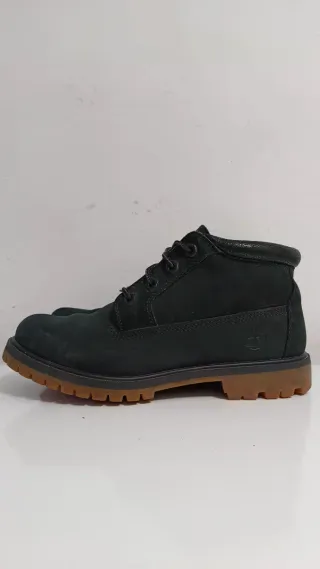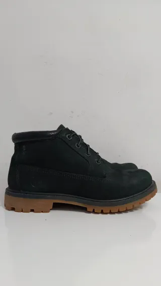 Botas Timberland waterproof impermeables de cuero en color negro con suela marrón. - Diseño de botín. - Cierre con cordones. - Detalle de logo en relieve.