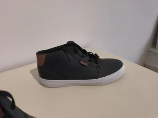 Zapatos estilo botín de la marca Vans. - Diseño en color negro con detalles en marrón. - Cierre con cordones. - Suela marron