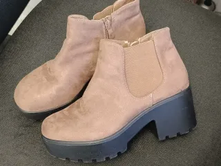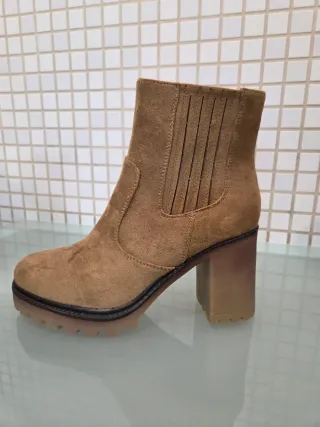 Botines de mujer talla 40 - Material exterior tipo ante. - Detalle de elástico lateral. - Tacón grueso y plataforma bajo