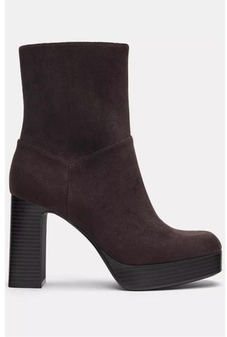 Botines de plataforma en color marrón. - Material tipo ante. - Detalle elástico en los laterales. - Tacón grueso.