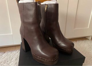 Botines de tacón de la marca Patricia Miller en color marrón. Hechos en España. Puestos solo una vez. Tacón de 9 cm y plataforma de 2 cm. Precio nuevos 69 euros.