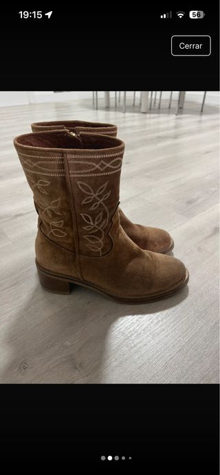 Botines de estilo campero de ante. - Material de ante. - Color marrón. - Diseño con bordados. con caja incluida tacón de 4,5cm cómodas las vendo porque me quedan grandes
