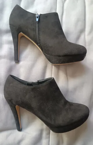 Botines de tacón alto. - Material de ante. - Cierre de cremallera en la parte trasera.puestos 2 veces