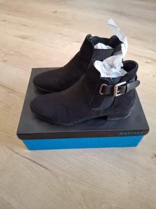 Botines de la marca Marypaz en color negro. Con etiqueta - talla 39 - suaves - Cierre de cremallera lateral. - Suela de goma antideslizante.