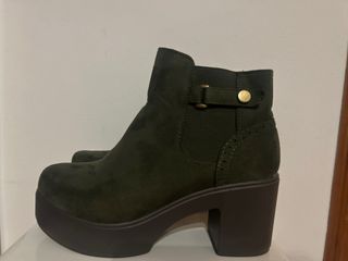 Botines de tacón alto con plataforma. - Poco uso, en buen estado. - Diseño elegante y moderno. - Cierre de cremallera lateral.