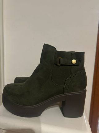 Botines de tacón con cremallera lateral. - Material exterior de ante. - Suela de goma con plataforma. - Tacón grueso y cuadrado.