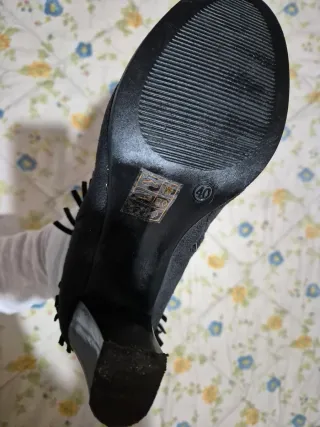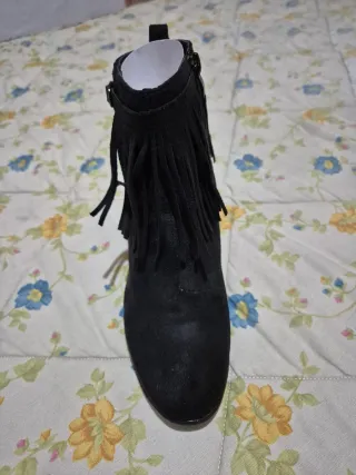 Botín de tacón con un diseño de flecos muy llamativo. Solo se ha usado una o dos veces, está prácticamente nuevo. - Tacón alto. - Detalle de flecos. - Cierre de cremallera lateral. - Precio negociable.