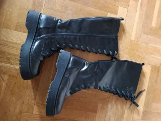 Botas altas de estilo militar a media pantorrilla con suela gruesa T.40 de Marypaz y botines con tacón grueso y hebillas a los lados T. 41 Ambas de Marypaz, se conservan en perfecto estado ya que no les di mucho uso . Los dos pares por 15€