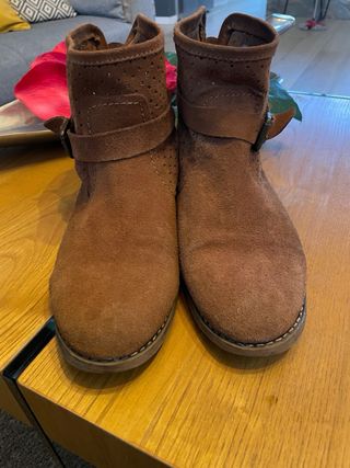 Botines de ante con tacón. Son cómodos y versátiles. - Cierre de cremallera lateral. - Tacón grueso. - Diseño tipo cowboy.