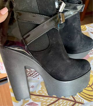 Botines de ante, color negro, tacon de 9cm, talla 39, marca Marypaz, en perfecto estado solo una vez puestos