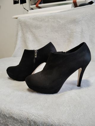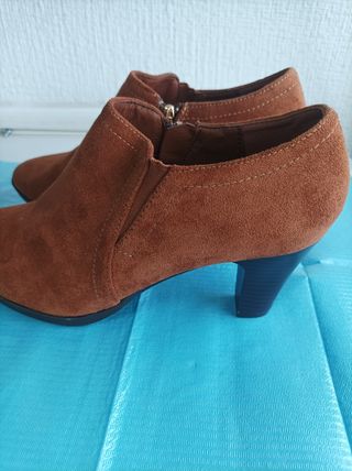 Buen estado. Poco uso. Tela aterciopelada de ante. Tacón 8 cm.