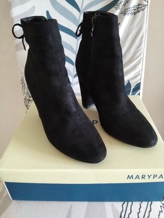 Botines de tacón de la marca Marypaz. - Color negro. - Talla 37. - Altura de tacón aproximada de 7,5 cm.