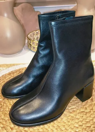 Elegantes botines de piel de Massimo Dutti. - Diseño en color negro. - Cierre lateral con cremallera. - Tacón bajo y muy cómodo. - Nuevas a estrenar - piel super blandita y cómoda - Precio en tienda: 149€