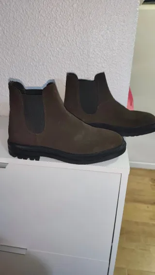 Botines de piel de la marca Massimo Dutti. - Material exterior de piel. - Diseño tipo chelsea con elásticos laterales. - Suela de goma negra, todo piel ante auténtico. - Talla 42. - Sin estrenar, costaron 159€ en tienda.