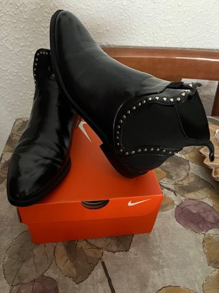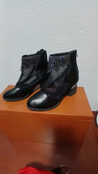 Botines de polipiel con cierre de cremallera y en el otro lado de goma para que puedas ponertelas más holgadamente del número 38 usadas tres o cuatro veces. Mirar bien las fotografías antes de comprar. Hago envíos. Siempre intento hacer el envio el mismo día de la compra.