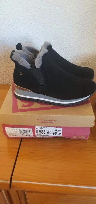 Botines con pelo calentitas, están sin usar son de Primark y tienen una buena suela, número 36 Botines deportivos Mustang con cuña interior usados en buen estado, número 36 Botines negros sin usar de Primark pone 37 pero es como un 36. No negociable. No envío
