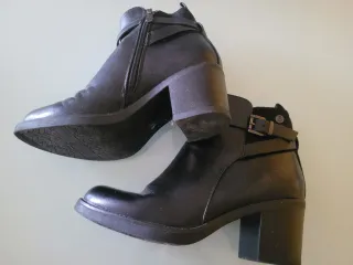 Botines negros con cierre de cremallera lateral y hebilla decorativa. Creo que son marca Bosanova. Número 38