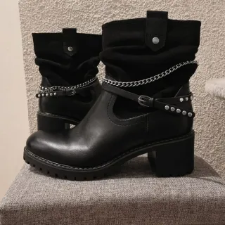 Botines elegantes con puntera acharolada. - Diseño moderno y sofisticado. - Materiales de calidad. Puestos tan solo una vez.
