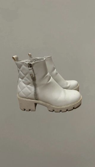 Botines de la marca Zara en color blanco. - Diseño acolchado en la caña. - Suela gruesa y antideslizante. - Cierre con cremallera lateral.