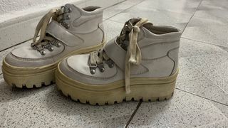 Preciosas botas de mujer de la marca ZARA. Son de color beige y blanco, con un diseño elegante y moderno. Ideales para la nieve y el frio - Fabricadas con piel sintética suave y cálida. - Diseño de botín con cordones. - Suela de goma resistente. - Perfecto estado, sin usar.