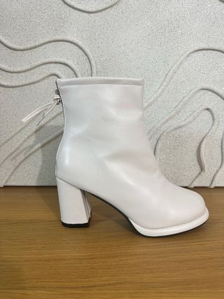 Botas de caña corta con tacón, color blanco. Son nuevas y no han sido usadas. - Tacón grueso y cuadrado. - Punta cuadrada. - Cierre de cremallera lateral. - tacón 7cm
