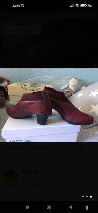 Botines negros muy cómodos.Pone talla 40,pero yo uso 38,5 y me están perfectos.Estan como nuevos no tienen apenas dos usos.