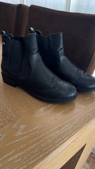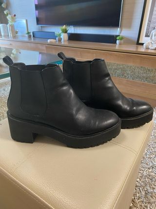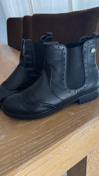 Botines tipo chelsea de color negro, muy cómodas. Están como nuevas, tienen algún pequeño arañazo en la parte delantera pero apenas se nota.