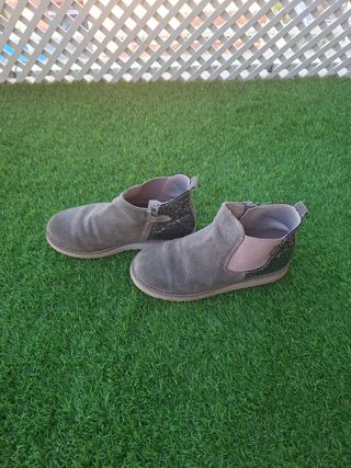 Botines de la marca Pablosky en color gris con detalles plateados. Son cómodos y fáciles de poner. - Material exterior de ante. - Cierre lateral con cremallera. - Detalle de purpurina en la parte trasera.