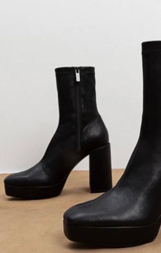Botines negros con plataforma. - Material: Piel. - Diseño moderno y elegante. - Tacón grueso para mayor comodidad.