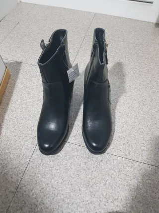 Botines negros de Zara, sin estrenar. Con una piel blandita y muy estilosos. Llevan cremallera lateral y tacón ancho (cubano) para mayor comodidad. Precio no negociable