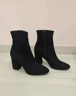 Botines de tacón con un diseño moderno y elegante. - Material exterior de antelina elastica - Detalle brillante en el talón. - Tacón cuadrado y cómodo 5cm - Cierre de cremallera lateral. - Sistema repelente al agua, no cala. - Elastico, se ajusta perfecto al pie PRECIO EN TIENA FISICA: 54,99€ NUEVO A ESTRENAR CON SU CAJA Y ETIQUETAS DE FABRICA LIQUIDACION STOCK ALMACENES.