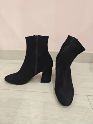Botines de tacón con un diseño moderno y elegante. - Material de ante. - Cierre de cremallera lateral. - Tacón grueso para mayor comodidad.
